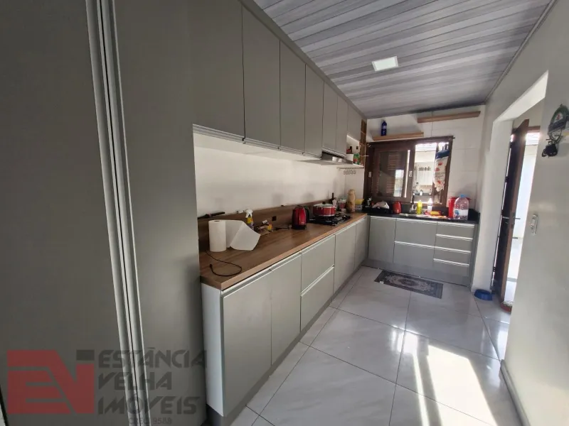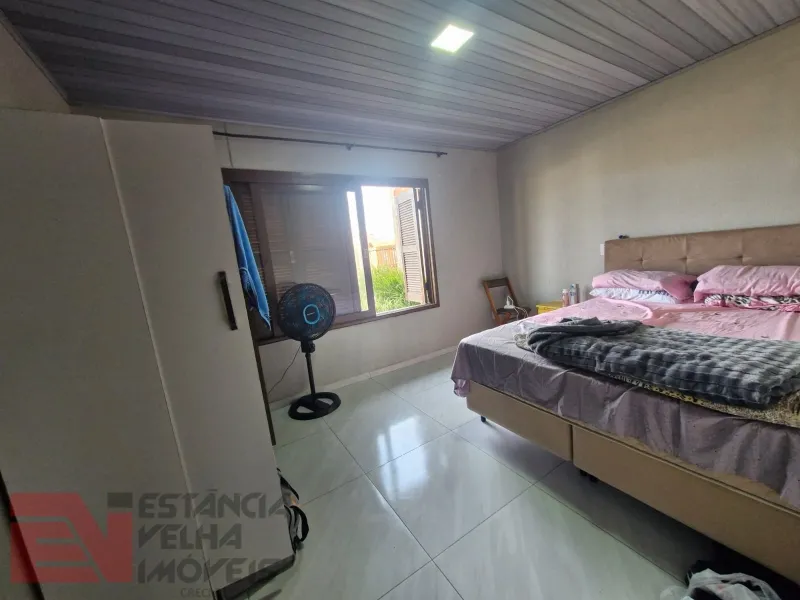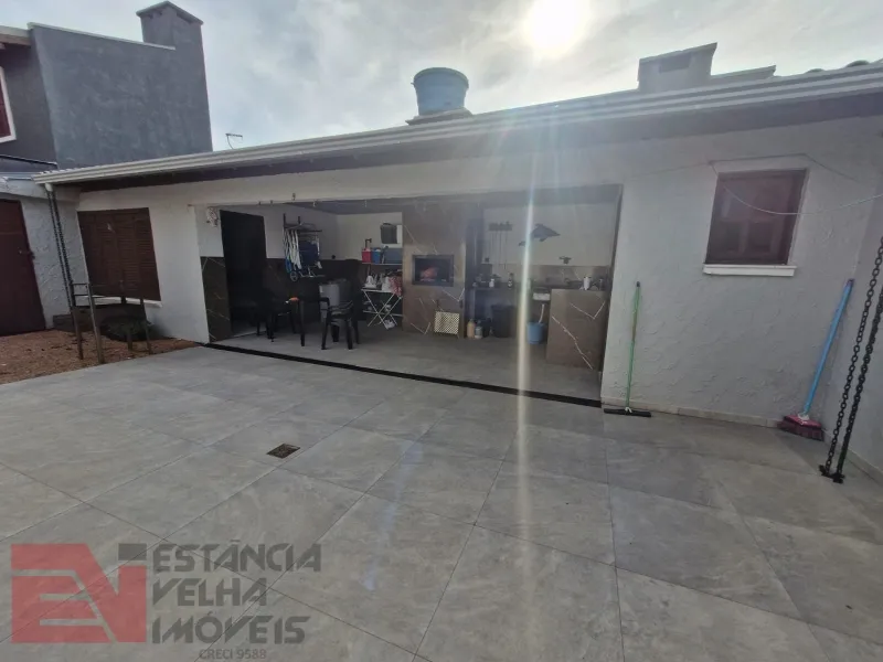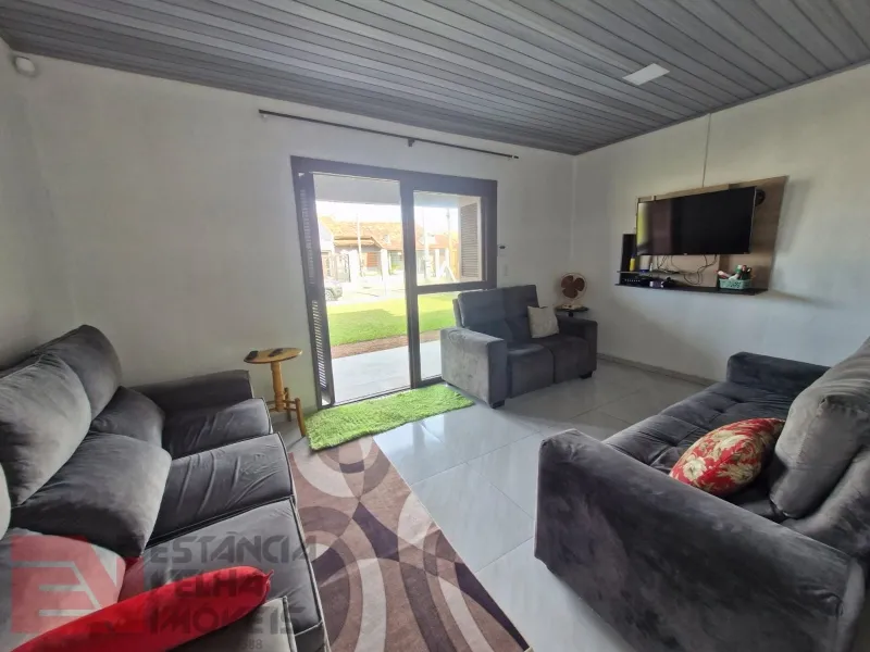 Casa de alvenaria semi-mobiliada, composta por 2 dormitórios amplos (sendo 1 suíte), sala de estar, sala de jantar, cozinha americana, 1 banheiro social e lavanderia. Nos fundos contém uma piscina com deck e sombra da figueira, salão de festas amplo com churrasqueira e lavabo, pátio amplo com jardinagem. Terreno amplo e todo cercado, medindo 12x40 metros, com área total de 480 m².